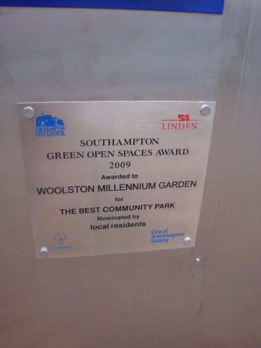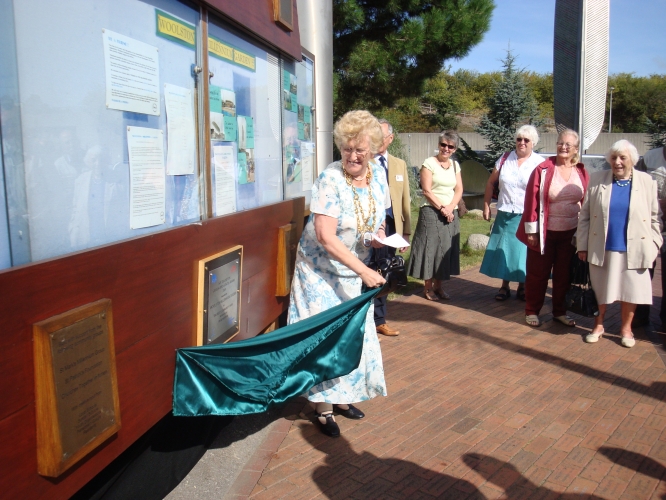 September 2009 Councillor Carol Cunio unveiling the Green Open Spaces Award plaque |