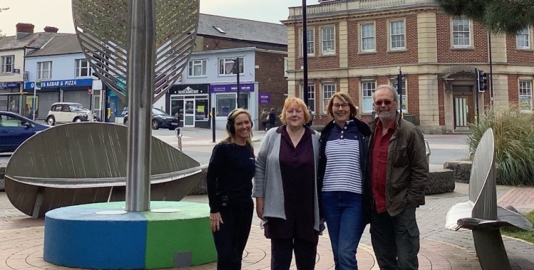 23 April 2022 Radio Solent featured the Garden in its 'Clued up' programme. Pictured: Radio Solent's Suzanne with Garden volunteers Gaynor, Katie and Barry. |