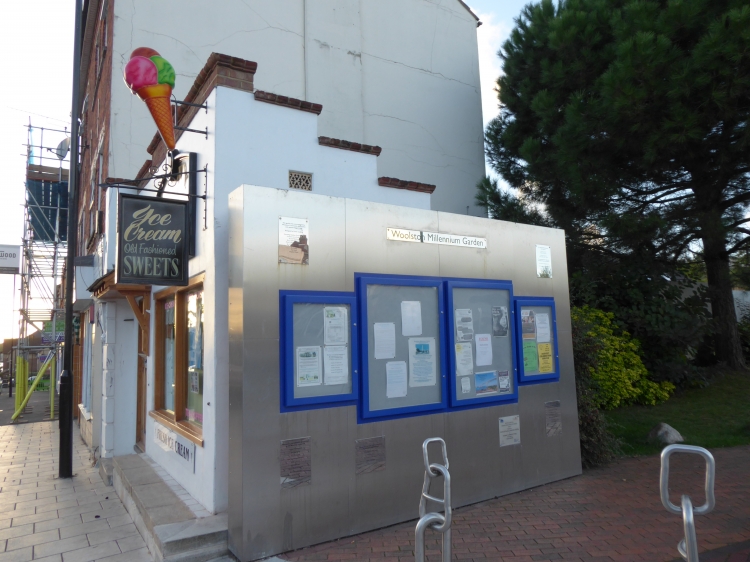 The original 2002 community notice board was constructed in the shape of an aerial view of the old floating bridge that used to cross the river from Woolston to town.