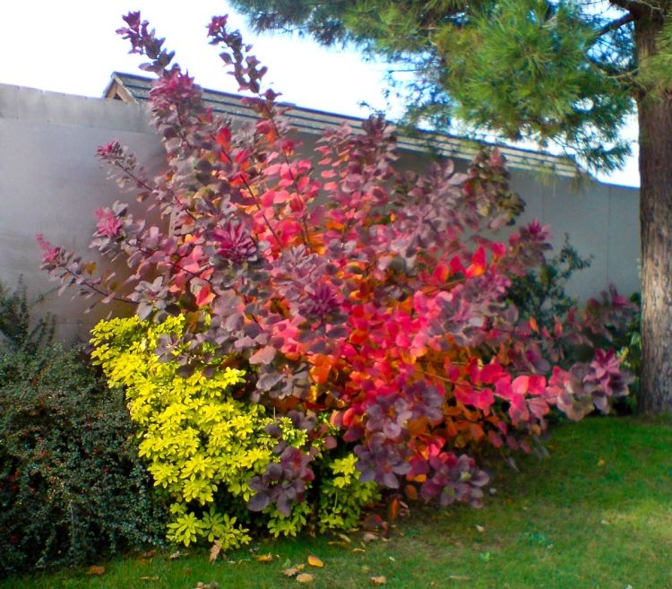 The grassed and planted area represents the earth and all that grows upon it. The rounded granite rocks meandering through the grass are recovered river boulders. The umbrella pine tree was imported from Italy in a very large flower pot!