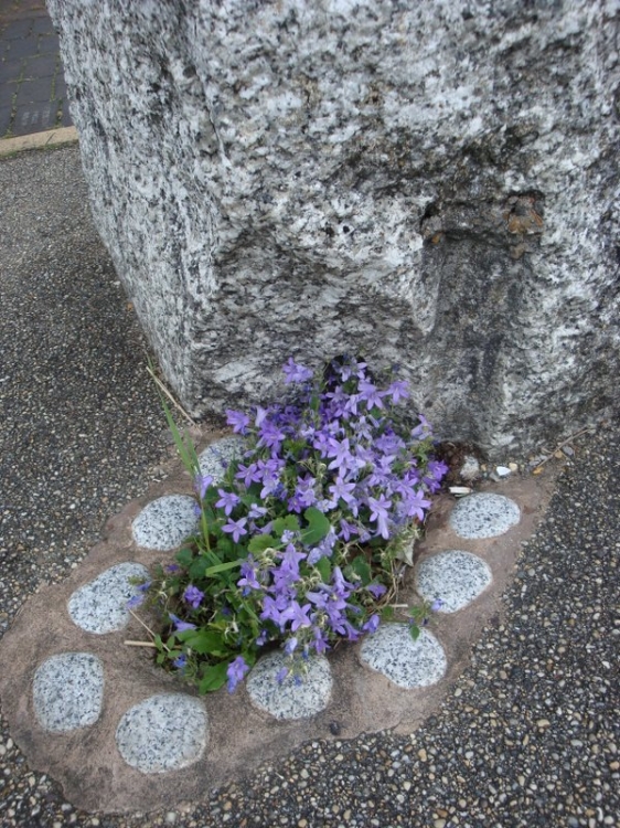 The gravel area is surfaced with fine aggregate gravel set in epoxy resin, to represent the seashore. The large granite blocks are believed to be old dock wall stones and were recovered from an old industrial yard next to Fratton Park football ground in Portsmouth. You can still see the grooves left by the quarry splitting process.