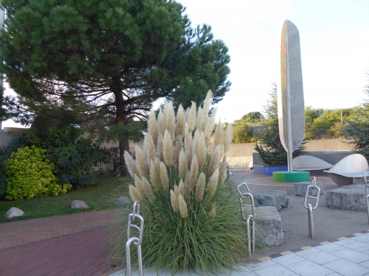 Bollard sculptures, granite stones and gravel surfacing |
